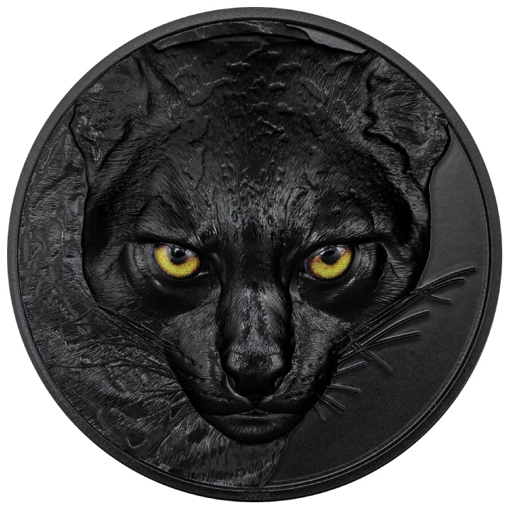 Srebrna moneta kolekcjonerska Palau: Hunters by Night - Ocelot kolorowany 2 uncje Srebra 2024 Obsidian Black jest piątym walorem z serii "Hunters by Night". To niezwykle ciekawy egzemplarz, który został wykonany z wielką dbałością o każdy szczegół. Walor może być uzupełnieniem kolekcjonerko-inwestycyjnego portfolio kupca.