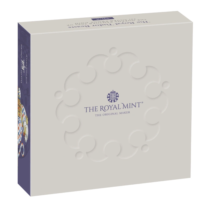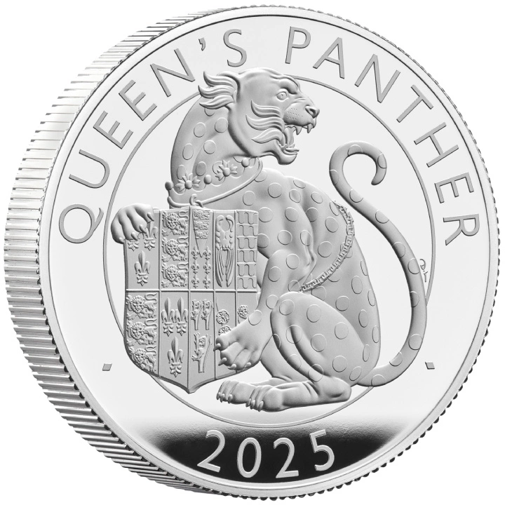 The Royal Tudor Beasts: The Queen's Panther 2 uncje Srebra 2025 Proof to siódmy egzemplarz z serii The Royal Tudor Beasts. Walor przedstawia bogatą heraldykę dynastii Tudorów poprzez projekt monet. Inspirowana rzeźbami przy Moat Bridge w Hampton Court Palace, moneta symbolizuje słynne połączenie Henryka VIII z jego trzecią żoną, Jane Seymour. Pantera na Moat Bridge jest ostatnim królewskim zwierzęciem, które odwiedzający spotykają przed wejściem do pałacu.