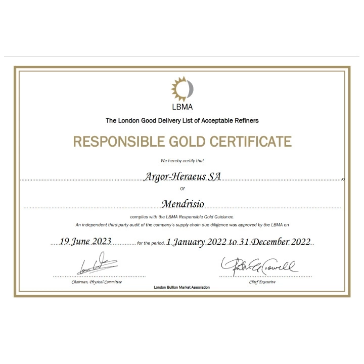 Argor Heraeus to jeden z najbardziej cenionych producentów metali szlachetnych na świecie, co gwarantuje najwyższą jakość produktu oraz jego szeroką akceptację na rynkach międzynarodowych. Sztabki z akredytacją menniczą Argor Heraeus zapewniają inwestorom doskonałą płynność oraz pewność inwestycji.