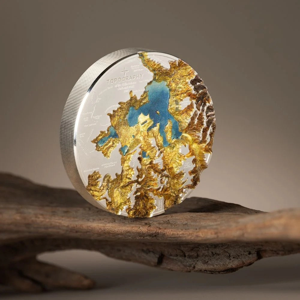 Dzięki technologii smartminting i zastosowaniu Ultra High Relief, moneta prezentuje topografię parku z imponującą precyzją i trójwymiarowym efektem. Realistyczna kolorystyka podkreśla naturalne formy terenu oraz błękit jeziora Yellowstone, dając efekt niemal fotograficznego odwzorowania krajobrazu.