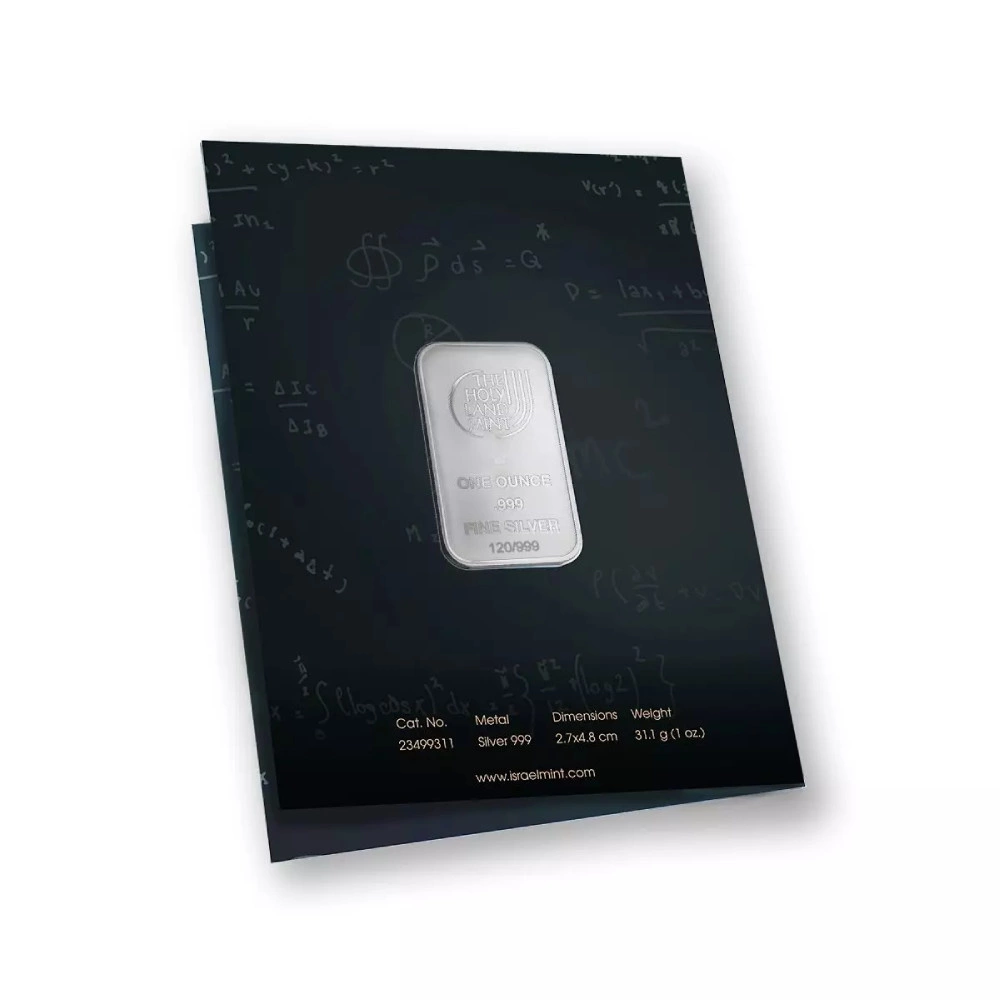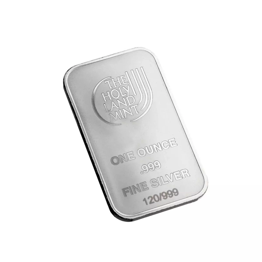Rewers zawiera charakterystyczne logo The Holy Land Mint, informacje o masie, próbie srebra oraz unikalny numer seryjny, co łączy estetykę wykonania z gwarancją autentyczności i wartości kruszcu.