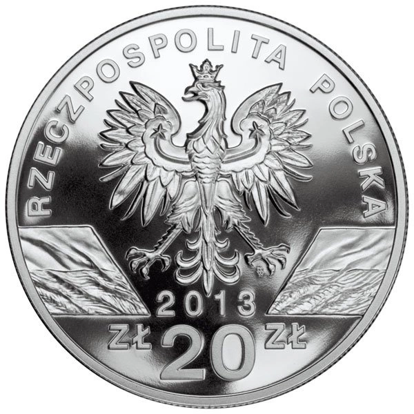 Awers monety NBP zawiera orła w koronie, napis „RZECZPOSPOLITA POLSKA”, rok emisji – 2013 oraz wartość 20 zł.