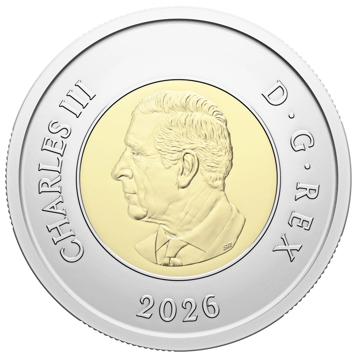 Rewers zawiera klasyczne symbole Kanady: bóbr (5 centów), żaglówka (10 centów), jeleń (25 centów), herb narodowy (50 centów), kaczka (1 dolar) i niedźwiedź polarny (2 dolary). Dodatkowo znajdują się oznaczenia wartości, kraju emisji oraz rok 2026.