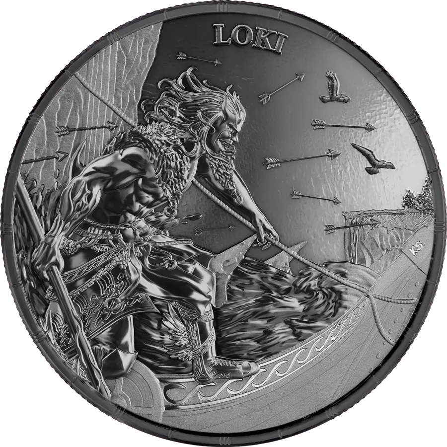 Ragnarök: Loki 1 uncja Srebra 2025 (Black Silver) to druga moneta w serii inspirowanej nordycką wizją kresu świata, opracowanej przez Germania Mint. Wybita z czystego srebra Ag .9999 i wykończona efektem Black Silver, oddaje dramatyczny charakter wydarzeń, w których dawny boski ład ustępuje chaosowi i ostatecznym starciom. Linia Ragnarök cieszy się dużym uznaniem wśród kolekcjonerów dzięki połączeniu bogatej symboliki, najwyższej jakości wykonania oraz limitowanej emisji.