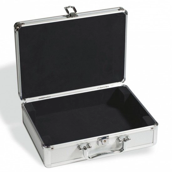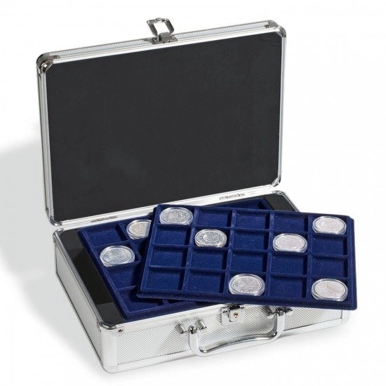 Przenoszenie monet w kuferku Cargo S6 jest komfortowe i bezpieczne. Choć konstrukcja kuferka jest tak solidna, to całość wygląda dyskretnie i elegancko. Wnętrze kuferka wykończono przy pomocy czarnego weluru, który wspaniale komponuje się ze srebrnymi elementami i stanowi znakomite tło dla monet srebrnych, złotych, miedzianych i platynowych.