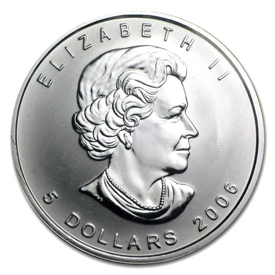 Na rewersie monety został przedstawiony liść klonowy, będący symbolem narodowym Kanady, a także próba w jakiej została wybita moneta (Ag .9999) oraz nazwa kraju (Canada), w którym jest produkowana.