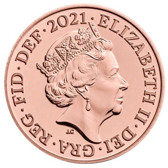 Awers monet przedstawia wizerunek Królowej Wielkiej Brytanni Elżbiety II w koronie.