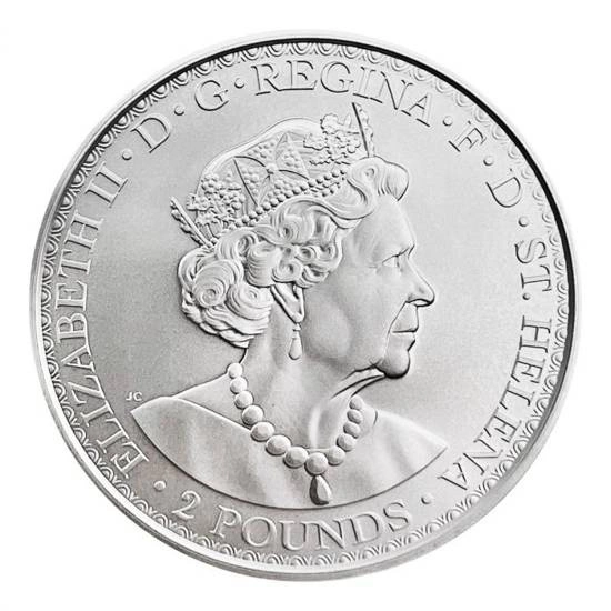 Moneta St Helena Una and the Lion 2 uncje Srebra 2021 to trzeci egzemplarz w nowej serii St Helena Una and the Lion. Opowieść o Unie i Lwie została napisana przez poetę Edmunda Spencera w 1590 roku. Dzieło jest jednym z najdłuższych poematów napisanych w języku angielskim. Składa się z sześciu ksiąg i 36 000 wierszy. Powszechnie uważa się, że dzieło jest alegorią życia i osiągnięć Elżbiety I.