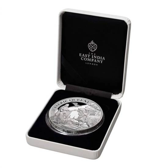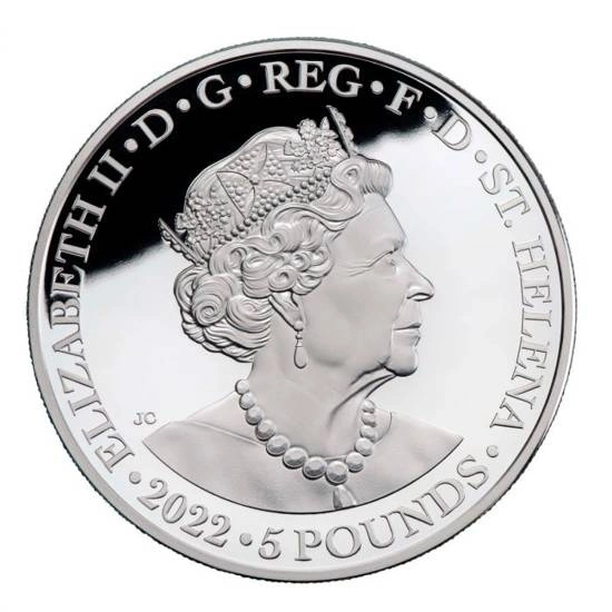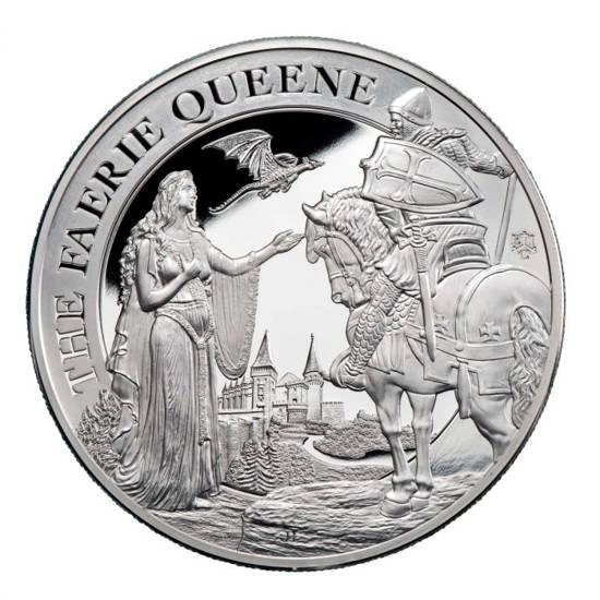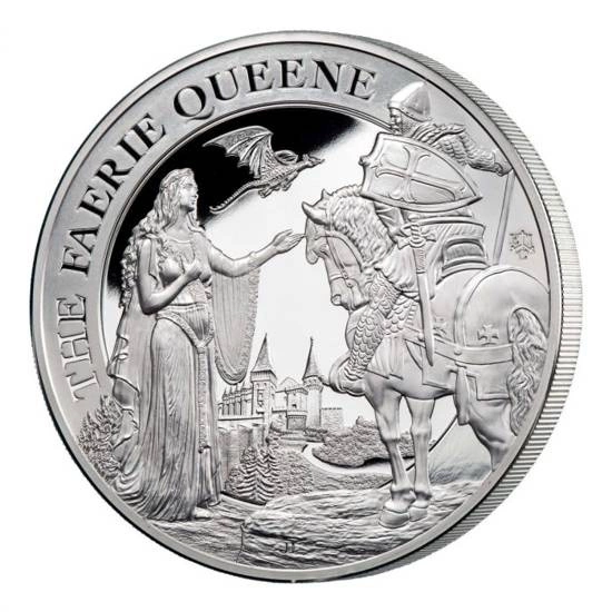 Moneta St Helena Una & Redcrosse 5 uncji Srebra 2022 Proof to pierwszy egzemplarz w nowej serii The Faerie Queene. Walor nawiązuje do dzieła, czyli pierwszej księgi Edmunda Spensera, która opowiada historię rycerza Redcrosse'a, dotyczącą uratowaniu rodziców Uny z niewoli złego smoka. Rycerz dokonał tego działania poprzez prośbę Królowej Faerie. Cała seria będzie skupiać się na różnych historiach rycerzy, księżniczek, jak również na mitycznych bestiach, magicznych złoczyńcach, honorze, zdradzie, miłości i stracie.