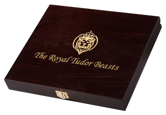 Drewniana kaseta The Royal Tudor Beasts 10 monet x 1 uncja Złota