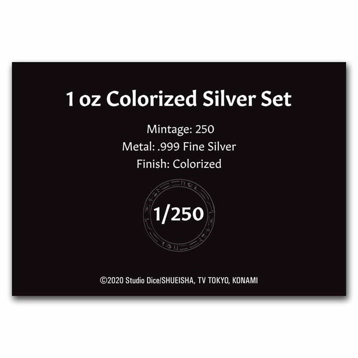 Awers srebrnych monet przedstawia herb Niue (Public Seal of Niue), logo YU-GI-OH!, napis "IT'S TIME TO DUEL". Na awersach znajduje się także informacja o wadze, czystości kruszcu, wartości nominalnej i roku wybicia waloru.