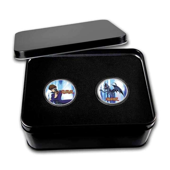 Zestaw 2 monet Niue: Yu-Gi-Oh! Seto, Blue-Eyes Dragon kolorowany - 25. rocznica 2 x 1 uncja Srebra 2022