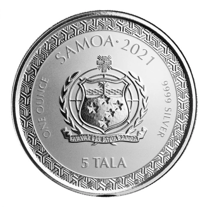Awers srebrnej monety zdobi herb Samoa. Na awersie znajduje się także informacja o wartości nominalnej, roku bicia, wadze, próbie kruszcu i kraju emitenta.