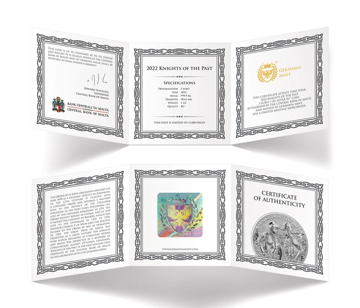 Malta: Knights of the Past 1 uncja Srebra 2022 to drugi egzemplarz, który nawiązuje do tradycji Zakonu Maltańskiego oraz do najsłynniejszego oblężenia Malty przez Imperium Osmańskie w 1565 roku. Wydarzenie jest uznawane za przełomowy moment w historii tego państwa oraz Europy.