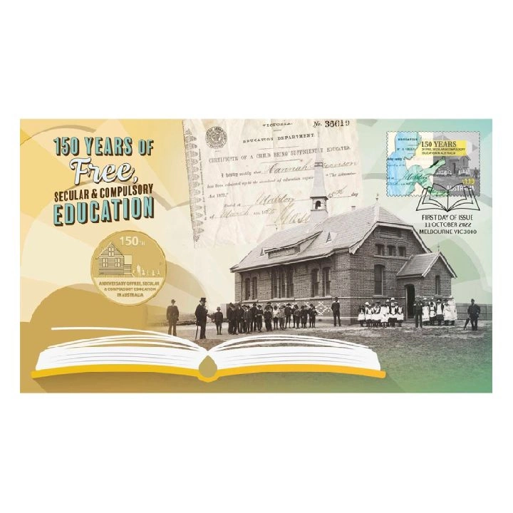 Moneta 150. rocznica Free, Secular & Compulsory Education in Australia Brąz Aluminiowy 2022 została wykonana z brązu aluminiowego, o wadze 13,5 gramów oraz średnicy wynoszącej maksymalnie 30,7 mm. Walor prezentuje oraz świętuje ustawę o edukacji z 1872 r., która uczyniła Wiktorię pierwszą australijską kolonią i jedną z pierwszych jurysdykcji na świecie, oferując dzieciom bezpłatną, świecką i obowiązkową edukację.