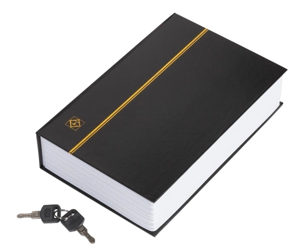 Z zewnątrz przypomina księgę inwentarzową, a wewnątrz znajduje się stalowy sejf z bezpiecznym zamkiem.