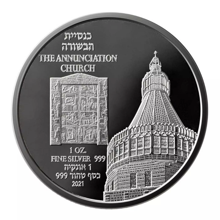 The Annunciation Church 1 uncja Srebra 2021 to 3 moneta z serii " Holy Land Sites", która przedstawia "Kościół Zwiastowania", znany również jako „Bazylika Zwiastowania". Jest jednym z najświętszych miejsc w świecie chrześcijańskim.