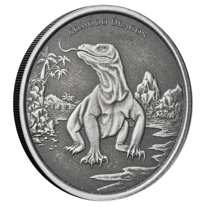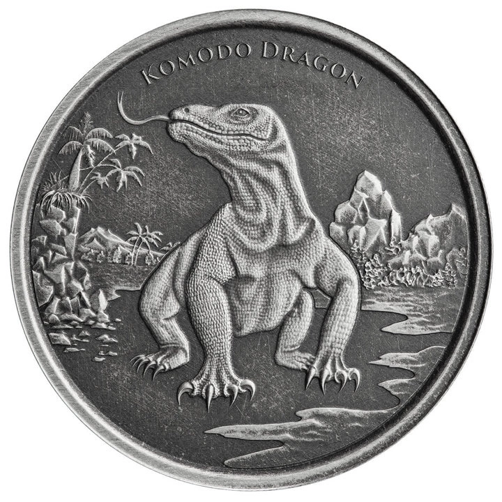Tokelau: Komodo Dragon 1 uncja Srebra 2022 Antiqued Coin