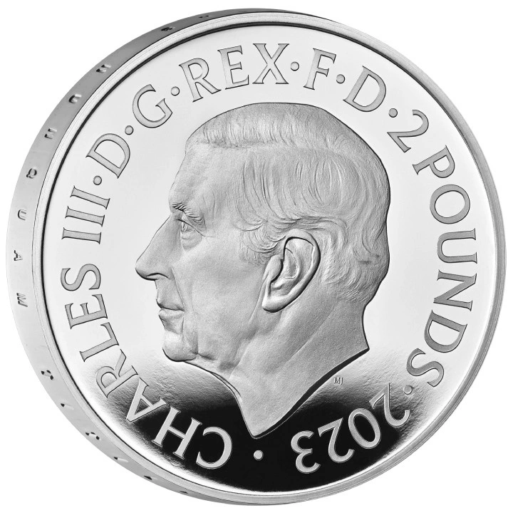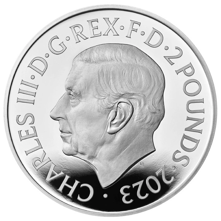 Awers ukazuje podobiznę Króla Wielkiej Brytanii Karola III oraz nominał i rok, według projektu Martin'a Jennings'a.