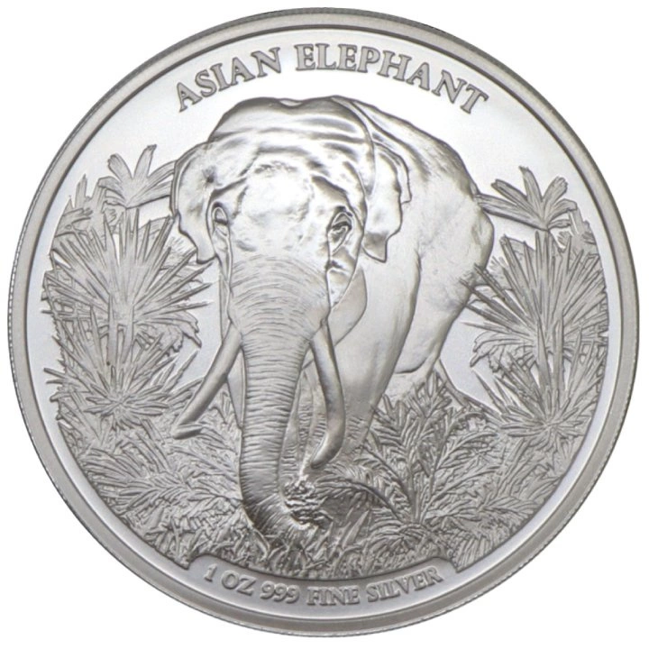 Srebrna moneta bulionowa Cambodia: Asian Elephant 1 uncja Srebra 2023 to ciekawa propozycja inwestycyjna, która może wzbogacić portfolio kolekcjonera. o ciekawa propozycja inwestycyjna, która może wzbogacić portfolio kolekcjonera. Słoń Azjatycki jest jednym z dwóch żyjących gatunków rodziny słoniowatych. Zamieszkuje lasy i zarośla Azji Południowej i Południowo-Wschodniej.