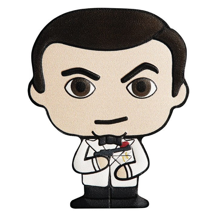 Rewers srebrnej monety przedstawia kolorowanego agenta 007. Projektantem rewersu był Lucas Bowers.