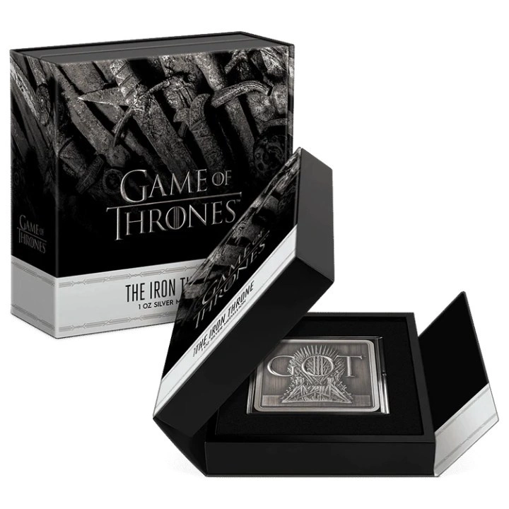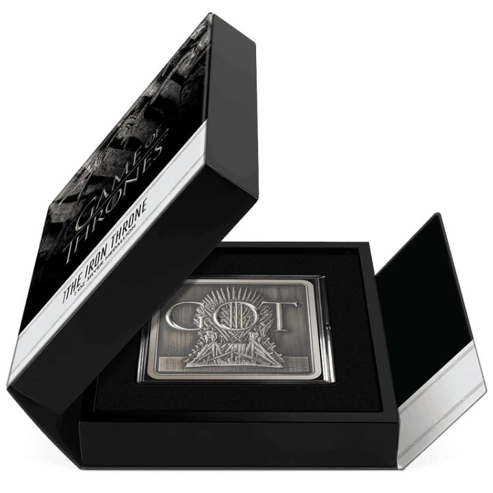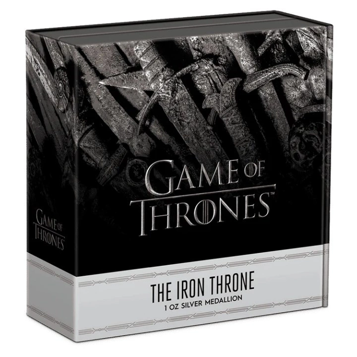 Awers przedstawia fragment Żelaznego Tronu oraz informacje na temat wagi, czystości kruszcu i dacie emisji.