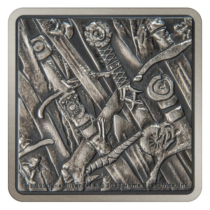 Walor został wybity z czystego srebra próby Ag.999 o wadze 1 uncji trojańskiej oraz wymiarach 35 x 35 mm, w standardzie antiqued.