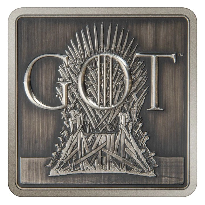 Rewers ukazuje Żelazny Tron oraz napis "GOT"
