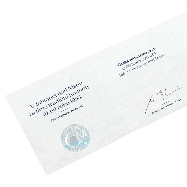 Ten unikatowy egzemplarz został zaprojektowany przez Petr'a Patkę, DiS. i wyprodukowany przez mennicę Czech Mint, jak również jest oficjalnym środkiem płatniczym na terenie Niue. Moneta posiada gwarancję, co do legalności, czystości kruszcu oraz pochodzenia metalu. Produkt dostarczany jest w oryginalnym pudełku wraz z certyfikatem autentyczności.