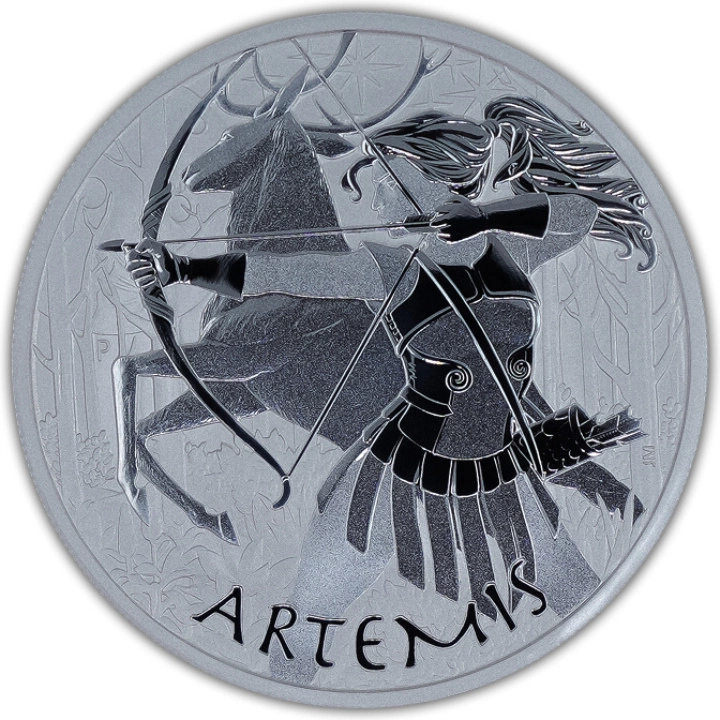 Srebrna moneta bulionowa przedstawiająca Artemidę to produkt wykonany z czystego kruszcu próby Ag.9999, o wadze jednej uncji trojańskiej oraz średnicy wynoszącej 40,9 mm. Moneta z 2023 jest ósmym walorem z serii Bogowie Olimpu. Moneta ta posiada gwarancję rządu Tuvalu oraz stanowi pełnoprawny środek płatności na terenie tego kraju. Co ważne, jest to srebrny egzemplarz, który posiada ściśle limitowany nakład, liczący 13 500 sztuk. Warto zatem zainteresować się tą monetą, jak i całą serią.