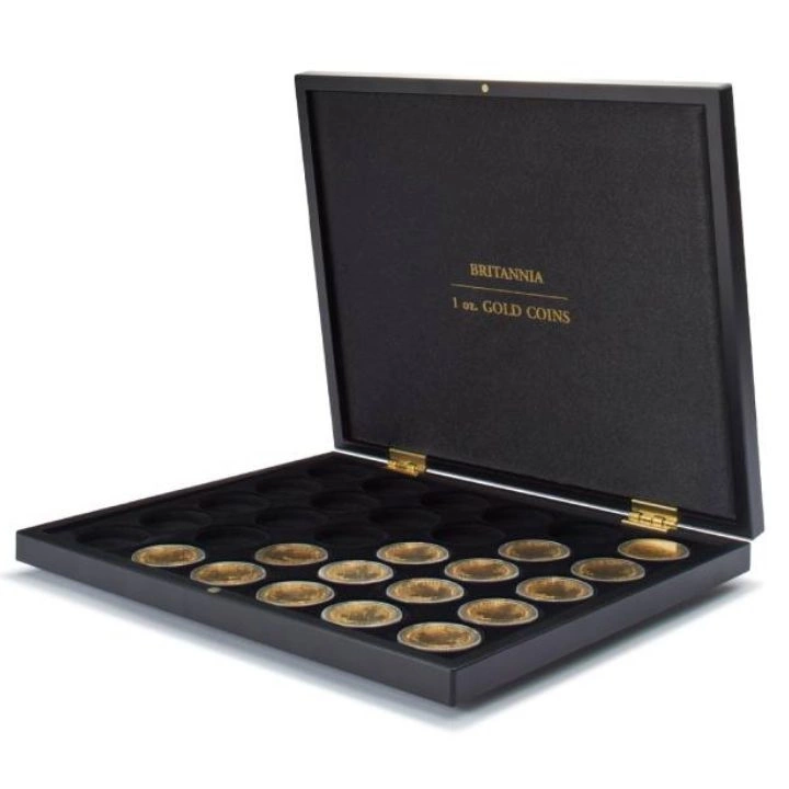 Leuchtturm - Kaseta Britannia 30 x 1 uncja Złota to wyjątkowy produkt, który przeznaczony jest do przechowywania 30 złotych monet, które wchodzą w skład serii Britannia, o wadze 1 uncji trojańskiej w plastikowych kapslach.